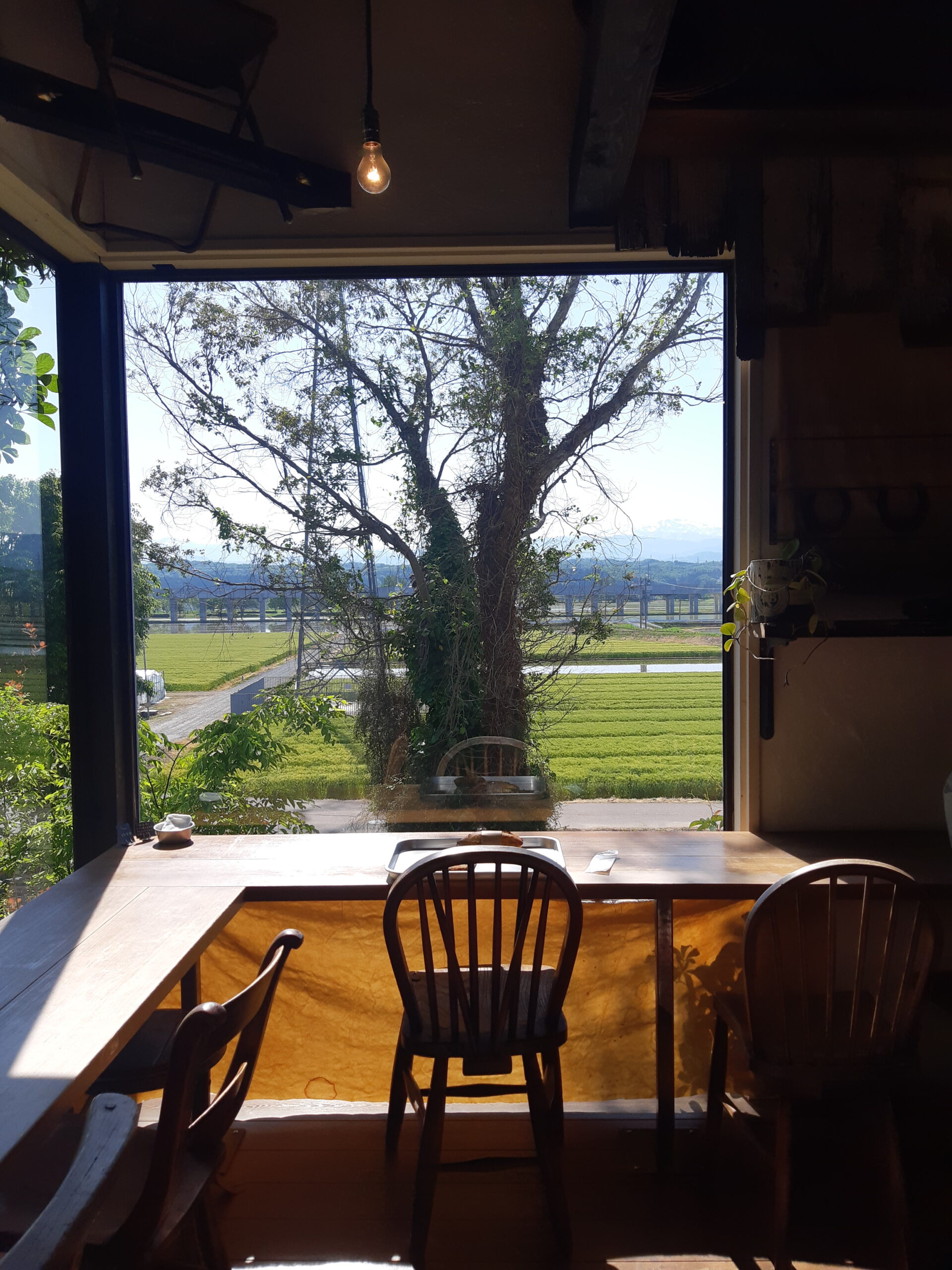 The seats on the first floor seemed lovely with all the indoor foliage, but since the weather was so good, we had to make full use of the view from the second floor. I mean, who can resist clear views of snow-capped Hakusan!?