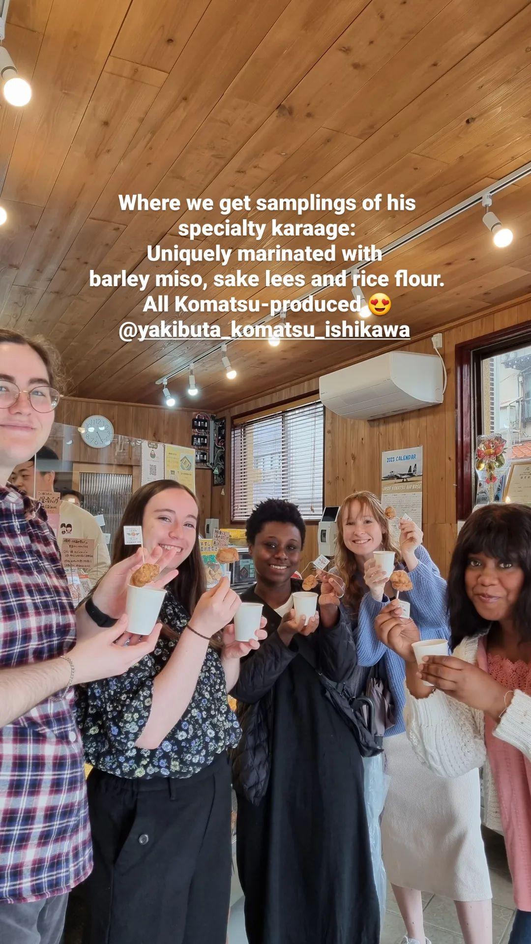 Committed to supporting local, the karaage here is prepared with a special marinate of all-Komatsu ingredients: Komatsu sake lees, Komatsu shio koji (fermented rice), Komatsu barley miso, and fried crisp with a coating of Komatsu rice flour!